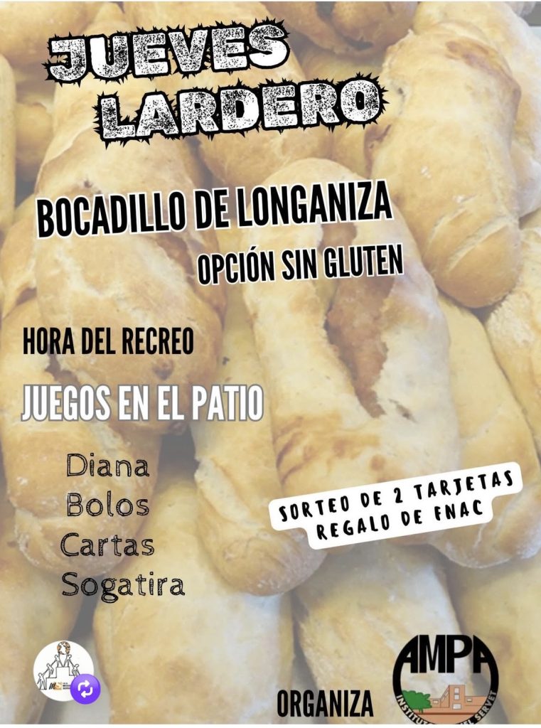 El AMPA del IES Miguel Servet repartirá bocadillos de longaniza en el recreo del jueves, 12 de febrero, para celebrar el Jueves Lardero.