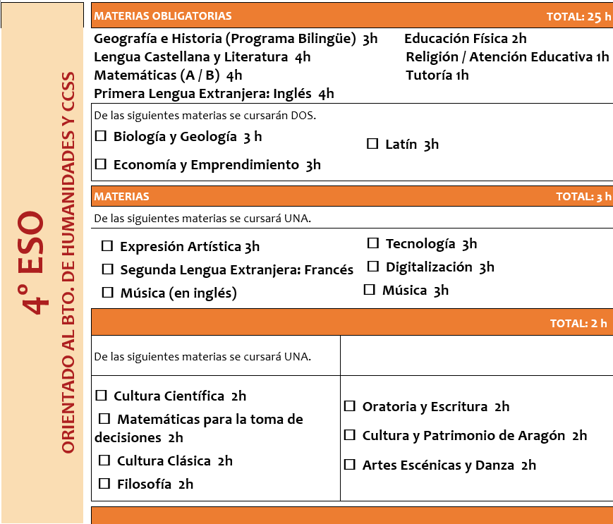 4º ESO orientado a Bto Humanidades y Ciencias Sociales